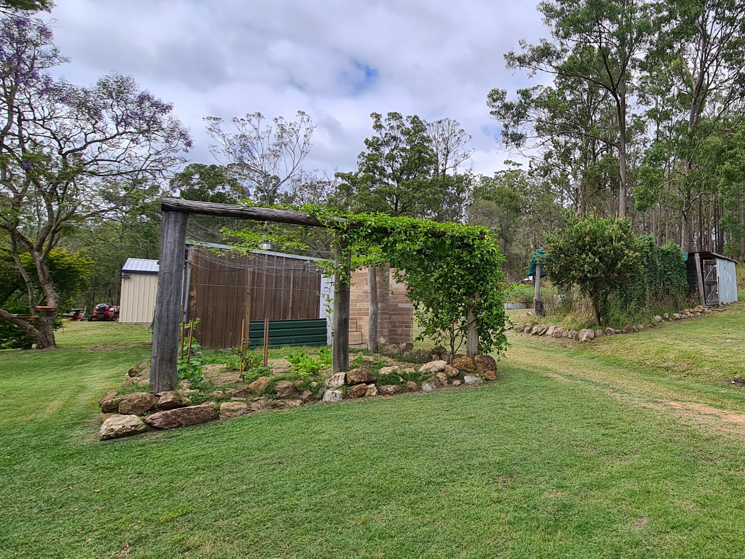 Other features of the property include an extra high 2 bay carport, a double garage, vegetable garden, dam, and a seasonal creek, 6.6 kW solar system with 20kw battery storage, and 66,000 litres of water storage.